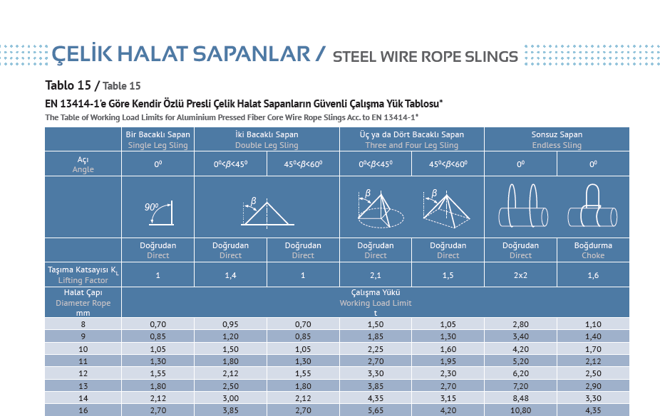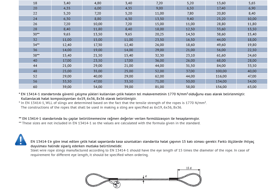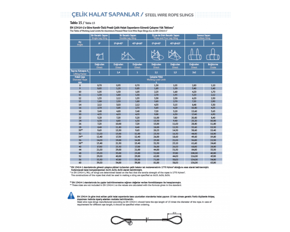 KENDİR ÖZLÜ PRESLİ ÇELİK HALAT SAPANLAR / EN 13414-1 REFERANSINA GÖRE