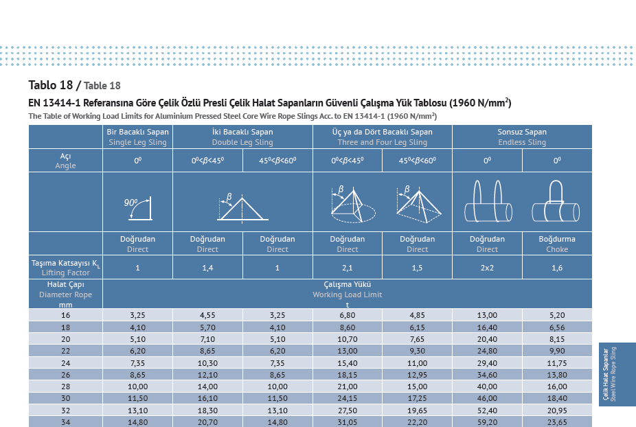 ÇELİK ÖZLÜ PRESLİ ÇELİK HALAT SAPANLAR / 1960 N/mm / EN 13414-1 REFERANSINA GÖRE