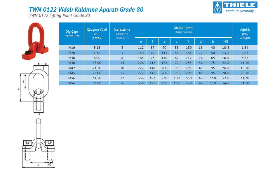 TWN 0122 VİDALI KALDIRMA APARATI / GRADE 80