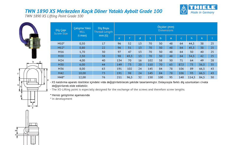 TWN 1890 XS MERKEZDEN KAÇIK DÖNER YATAKLI AYBOLT / GRADE 100