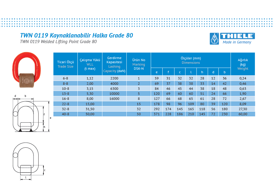 TWN 0119 KAYNAKLANABİLİR HALKA / GRADE 80