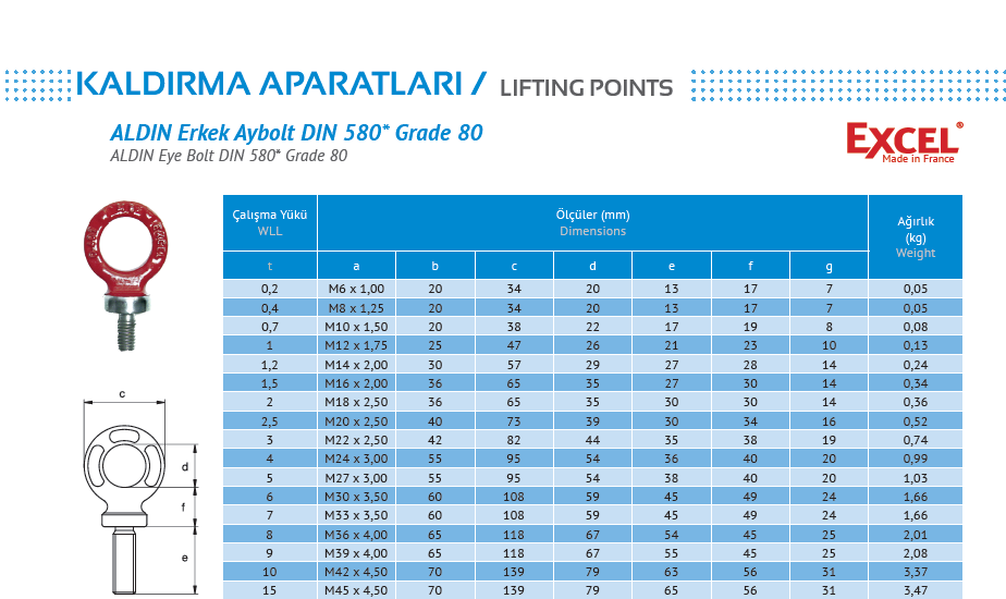 ALDIN ERKEK AYBOLT DIN 580 / GRADE 80