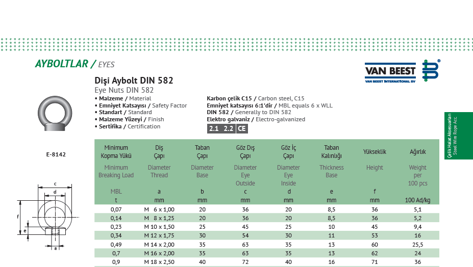 AYBOLT / DİŞİ AYBOLT DIN 582 / E-8142