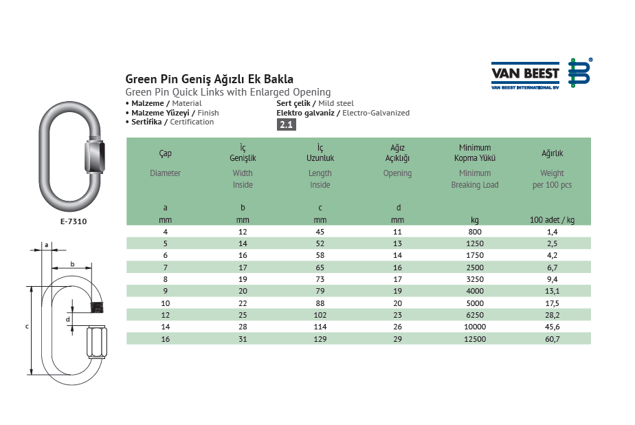 KARABİNA / GREEN PIN GENİŞ AĞIZLI EK BAKLA / E-7310