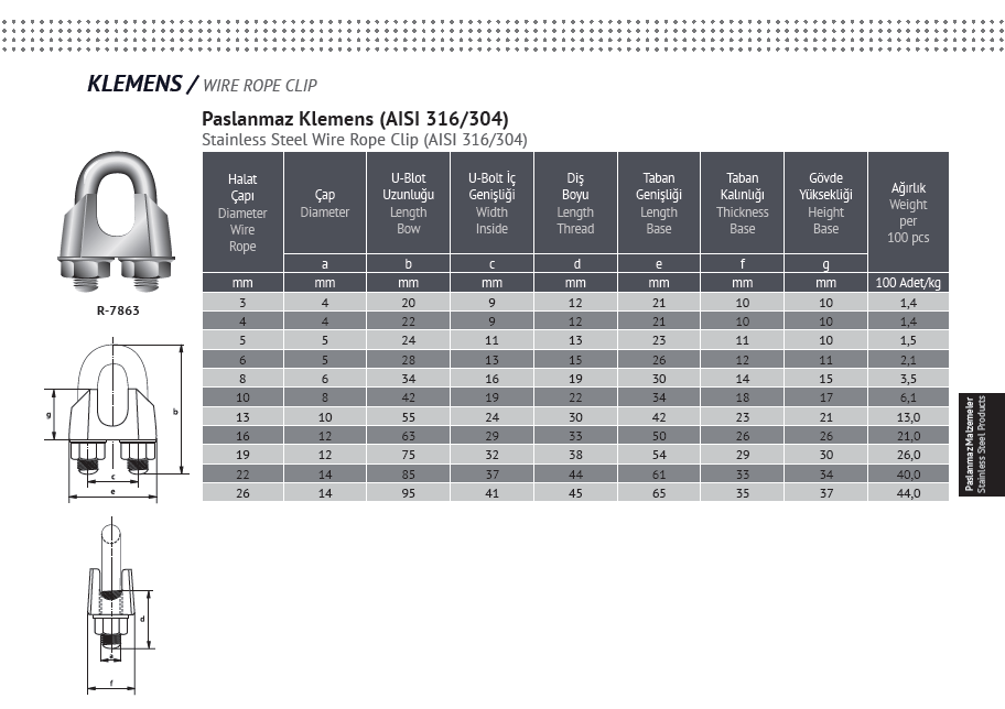 PASLANMAZ KLEMENS (AISI 316/304) / R-7863