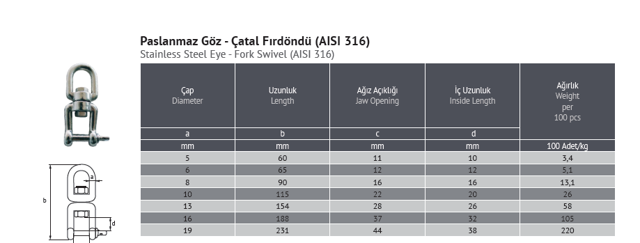 PASLANMAZ GÖZ-ÇATAL FIRDÖNDÜ (AISI 316)
