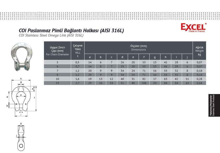 PASLANMAZ PİMLİ BAĞLANTI HALKASI - COI (AISI 316L)